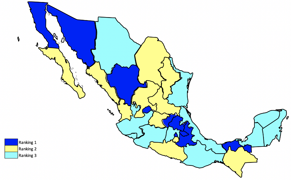 d) The institutional framework of the government and companies, made up of economic incentives, business incentives and all the processes of trade regulation, for the efficient use of knowledge. The knowledge economy index of top ten economies and that of Mexico are presented in (Table 1). The knowledge economy index is shown as the national average for Mexico is 5.45, but in the case of the education index is 4.85, we start from this base to establish the parameter in which the results can be found in the case of the states of the Mexican Republic.
